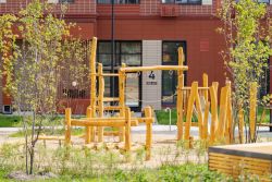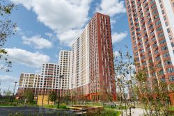 "1-й Донской": продуманная среда в развивающемся районе. На территории - муниципальные школа и 2 детских сада, поликлиника, торговый центр с площадью для мероприятий. Сеть пешеходных маршрутов ведёт к магазинам и кафе, отделённым от дорог зелёными фито-стенами.