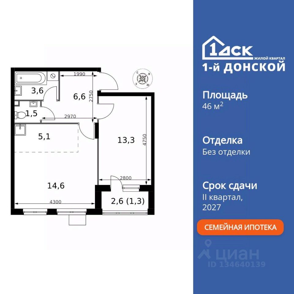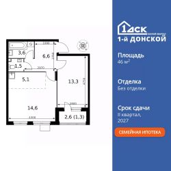 Продаётся 2-к квартира номер 773 общей площадью 46 кв.м. на 24-м этаже 24 этажного здания. Без отделки.