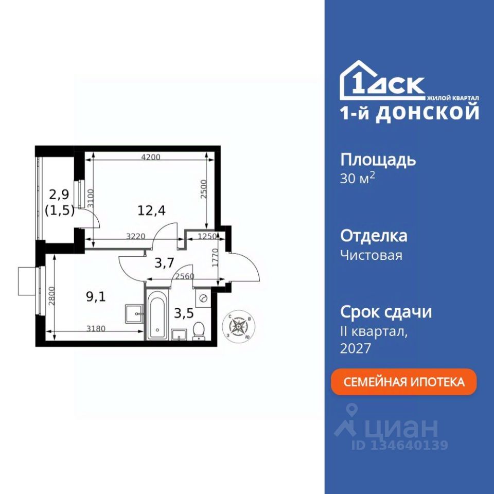 Продаётся 1-к квартира номер 727 общей площадью 30.2 кв.м. на 19-м этаже 24 этажного здания. Чистовая отделка.