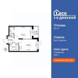 Продаётся 1-к квартира номер 537 общей площадью 35.7 кв.м. на 2-м этаже 24 этажного здания. Без отделки.