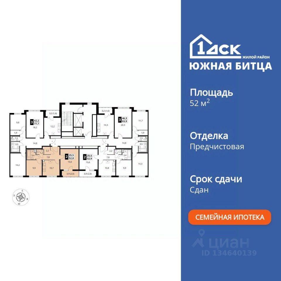 Продаётся 2-к квартира номер 243 общей площадью 52.9 кв.м. на 21-м этаже 22 этажного здания. Отделка Whitebox. Цена с учётом скидки.