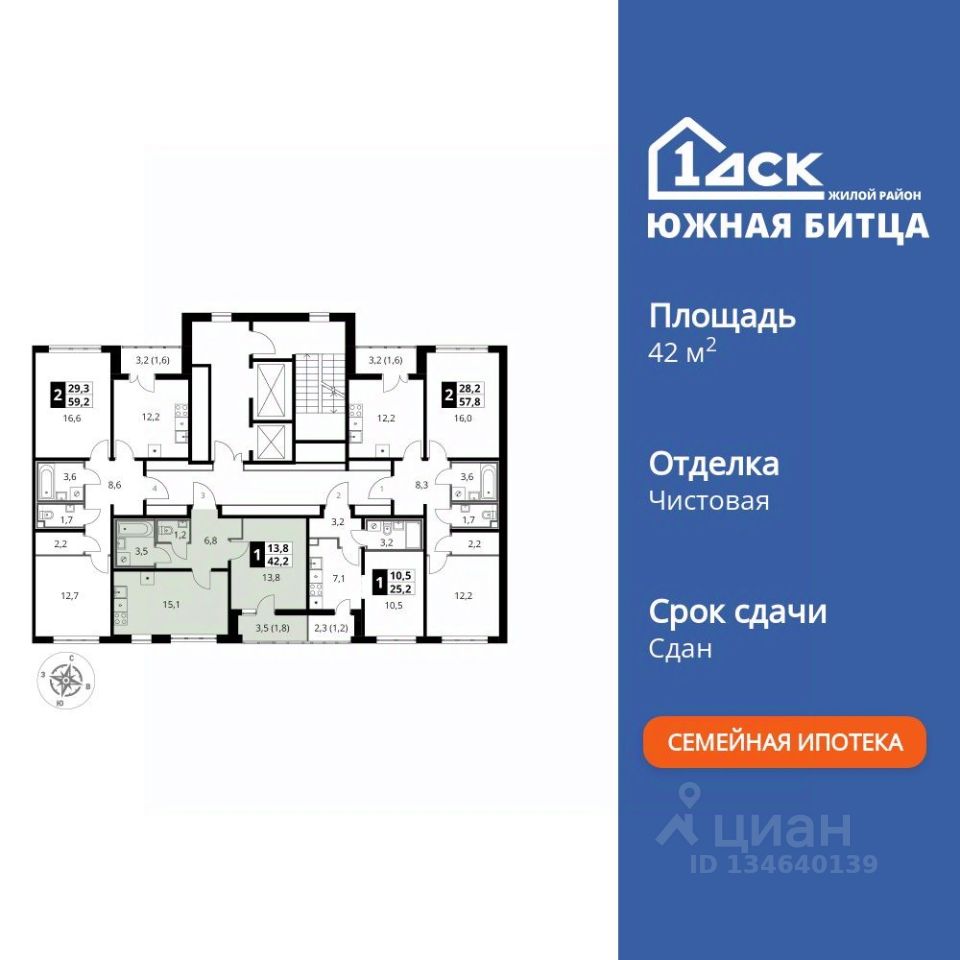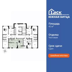 Продаётся 1-к квартира номер 323 общей площадью 42.3 кв.м. на 20-м этаже 22 этажного здания. Чистовая отделка. Цена с учётом скидки.