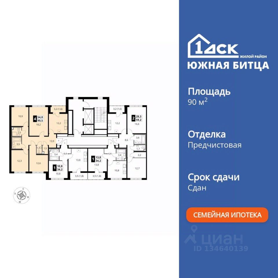 Продаётся 4-к квартира номер 376 общей площадью 90.6 кв.м. на 12-м этаже 23 этажного здания. Предчистовая отделка. Цена с учётом скидки.