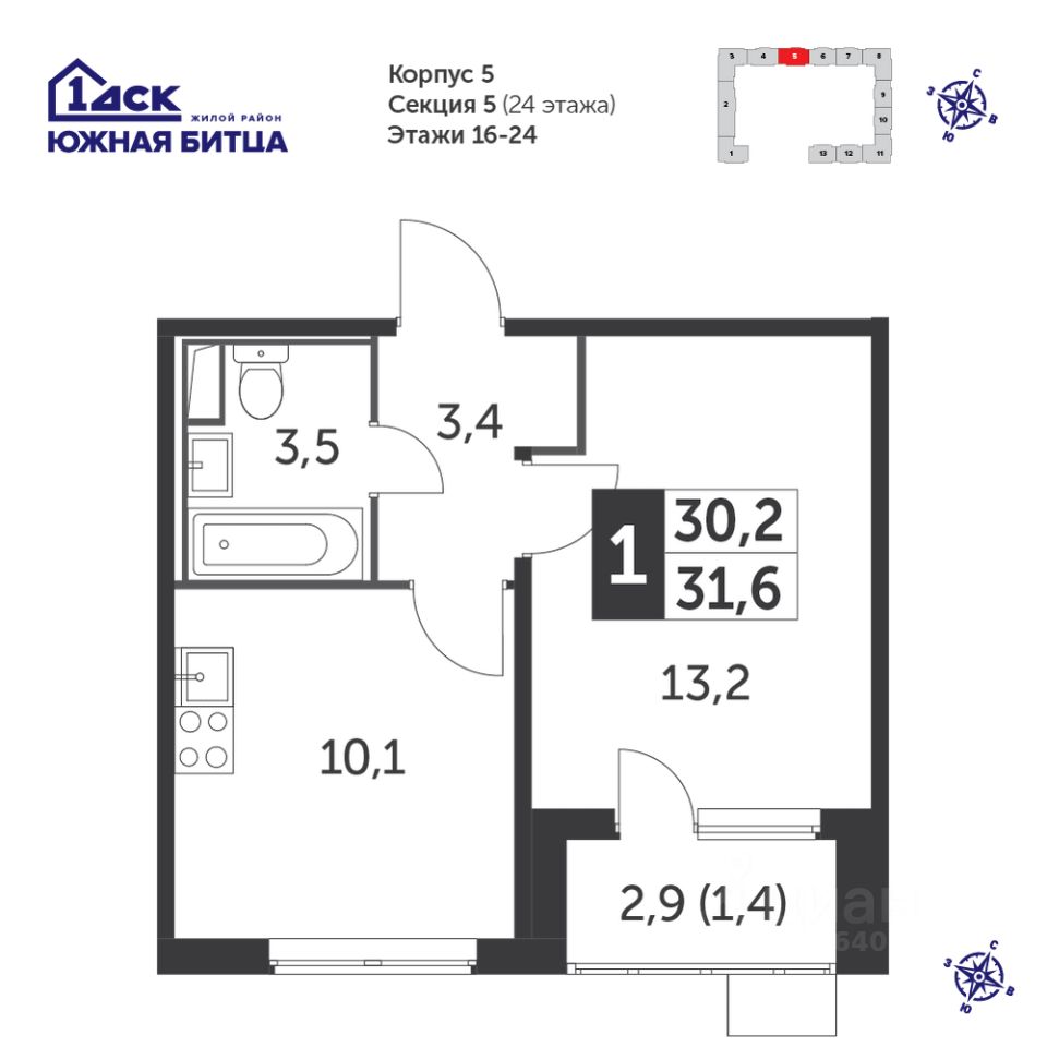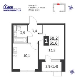 Продаётся 1-к квартира номер 710 общей площадью 31.6 кв.м. на 24-м этаже 24 этажного здания. Без отделки. Цена с учётом скидки.