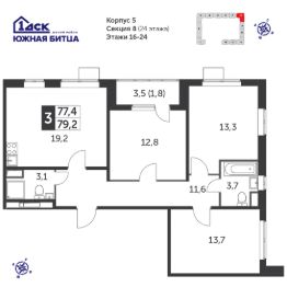 Продаётся 3-к квартира номер 989 общей площадью 78.6 кв.м. на 17-м этаже 24 этажного здания. Без отделки. Цена с учётом скидки.