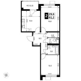 Продаётся 2-к квартира номер 55 общей площадью 62.1 кв.м. на 9-м этаже 18 этажного здания. Без отделки. Цена с учётом скидки.