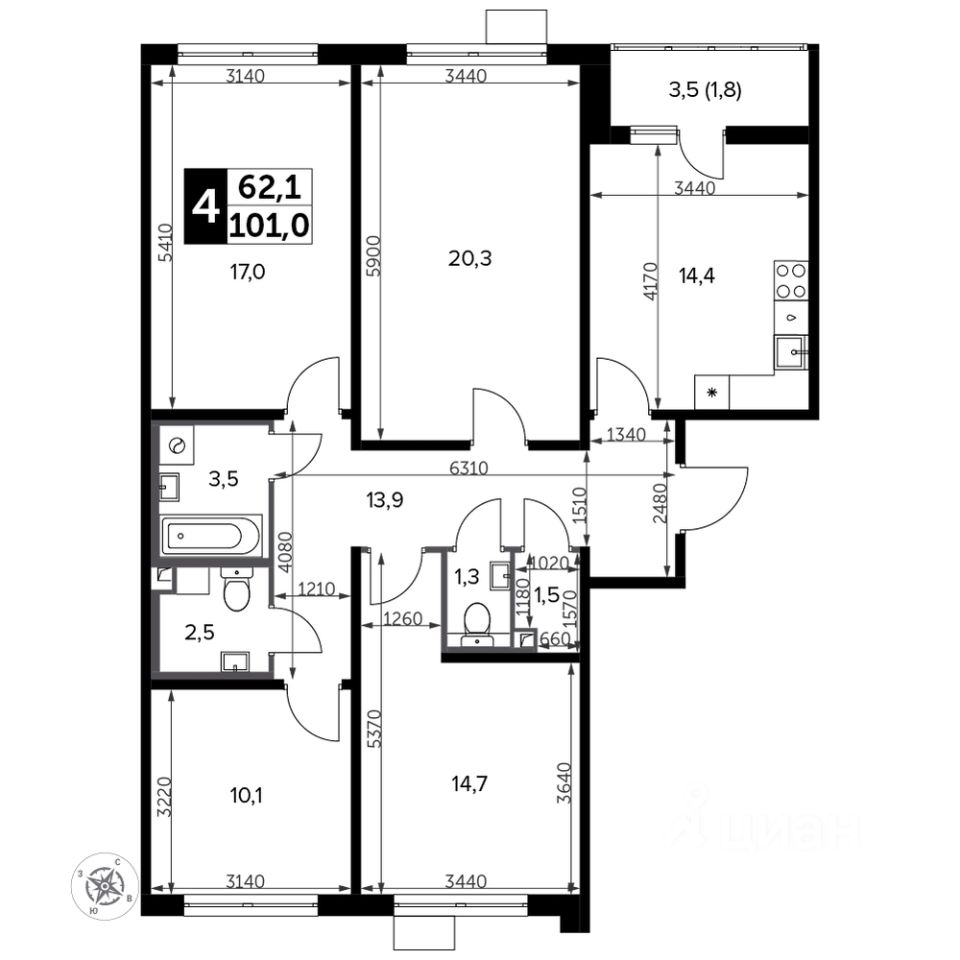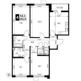 Продаётся 4-к квартира номер 441 общей площадью 102.5 кв.м. на 11-м этаже 23 этажного здания. Без отделки. Цена с учётом скидки.