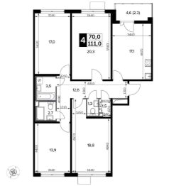 Продаётся 4-к квартира номер 229 общей площадью 112.8 кв.м. на 8-м этаже 20 этажного здания. Без отделки. Цена с учётом скидки.