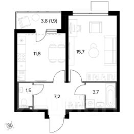 Продаётся 1-к квартира номер 448 общей площадью 42.5 кв.м. на 4-м этаже 20 этажного здания. Без отделки. Цена с учётом скидки.