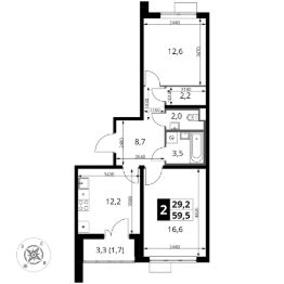 Продаётся 2-к квартира номер 432 общей площадью 59.5 кв.м. на 22-м этаже 22 этажного здания. Чистовая отделка.