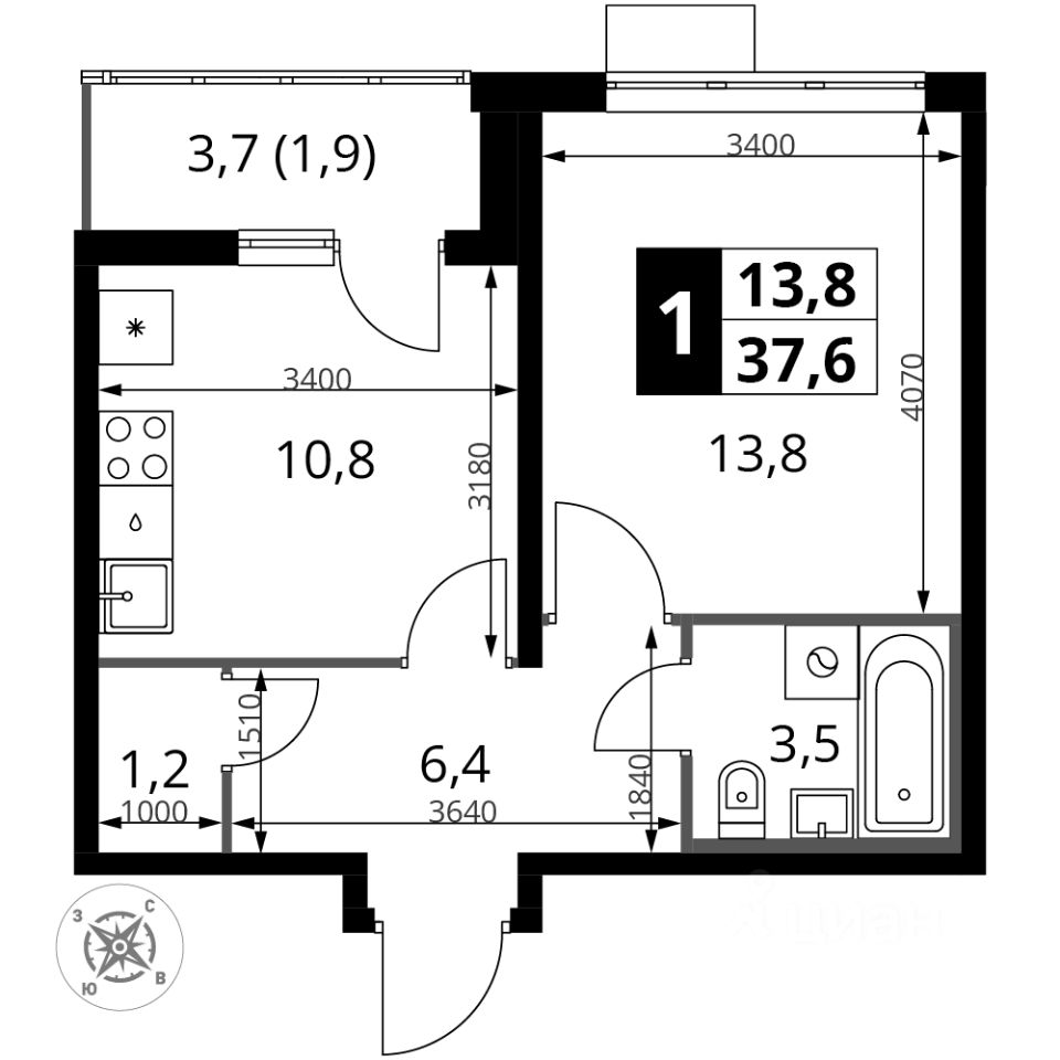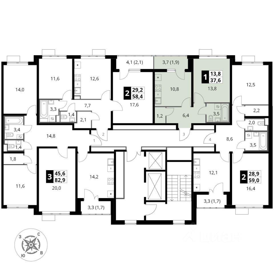 Продаётся 1-к квартира номер 459 общей площадью 37.9 кв.м. на 7-м этаже 22 этажного здания. Отделка Whitebox.