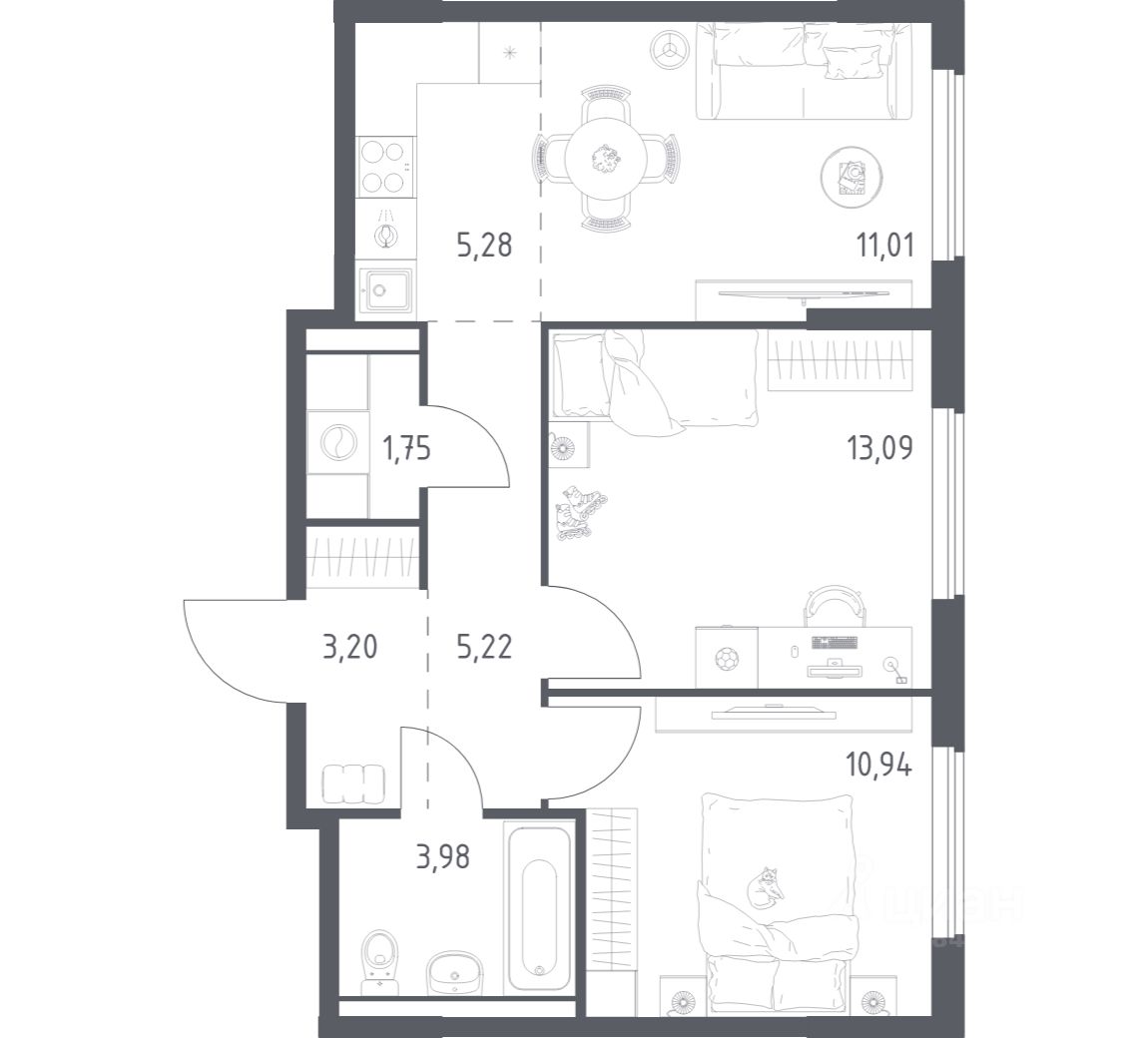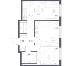 Строим кварталы для жизни с заботой о будущем. Предлагается 2-комнатная квартира комфорт-класса площадью 54,47 кв.м в корпусе 8.2 на 3-м этаже, в жилом комплексе "Горки Парк".