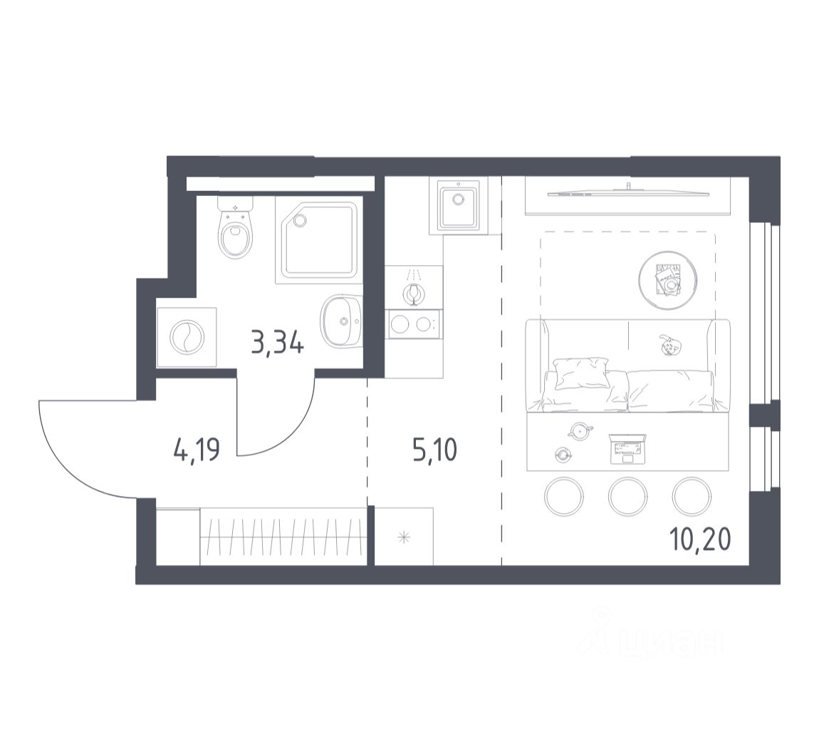 Строим кварталы для жизни с заботой о будущем. Предлагается студия комфорт-класса площадью 22,83 кв.м в корпусе 8.1 на 4-м этаже, в жилом комплексе "Горки Парк".