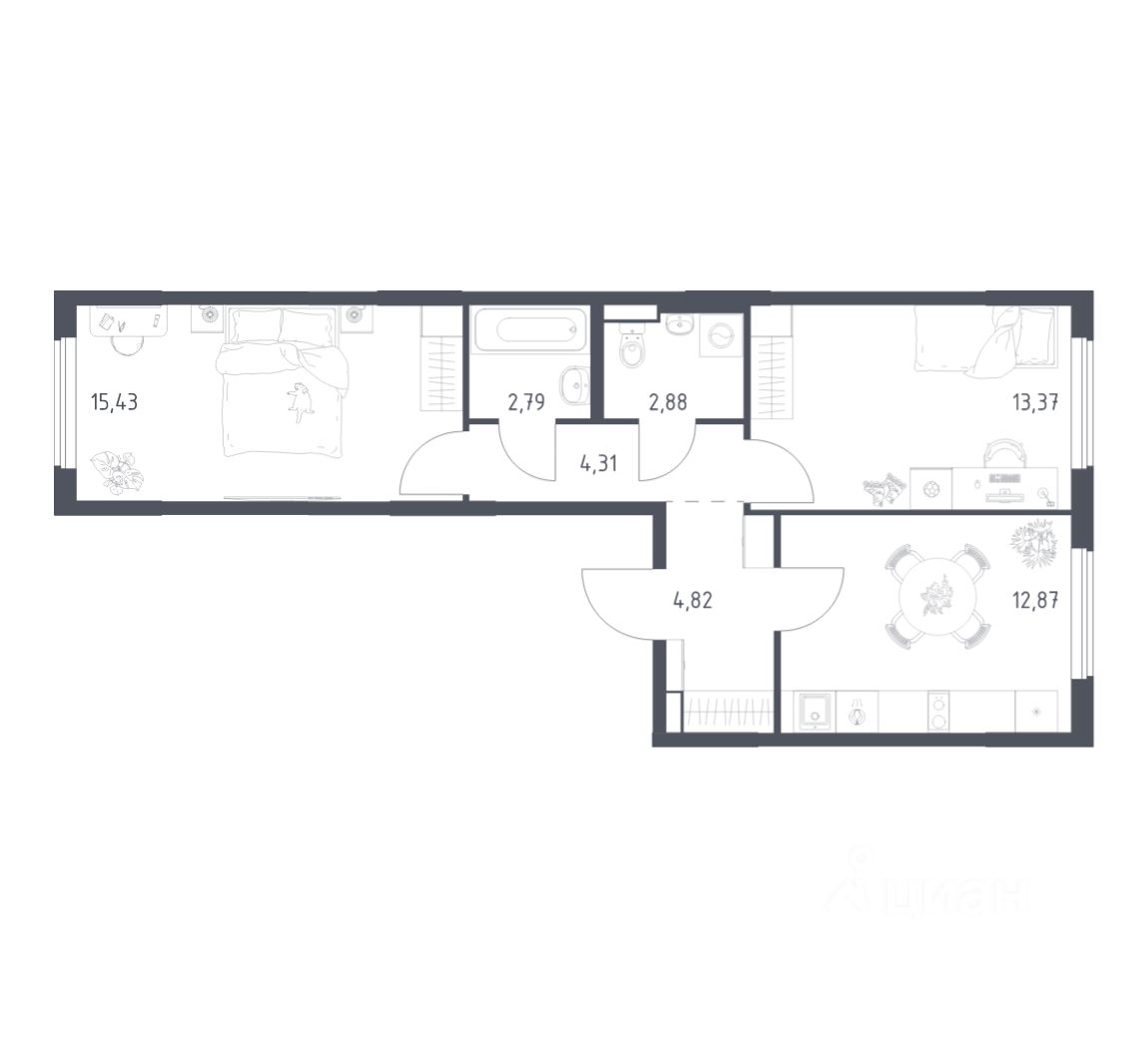 А если не хочется тратить время на ремонт, можно выбрать опцию — с отделкой. Перед тем как отдать ключи, застройщик установит натяжные потолки, поклеит обои под покраску, положит ламинат светлых тонов, а в санузлах — керамическую плитку и керамогранит.