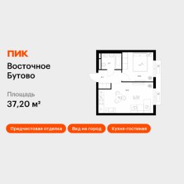 Продаётся 1-комн. квартира площадью 37,2 кв.м на 14 этаже 25 этажного дома (Корпус 55, Секция 1) проекта ПИК Восточное Бутово. Светлый просторный подъезд на уровне земли, функциональная планировка, большие окна, предчистовая отделка.