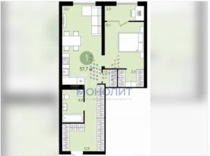 Общая площадь — 57,7 м²