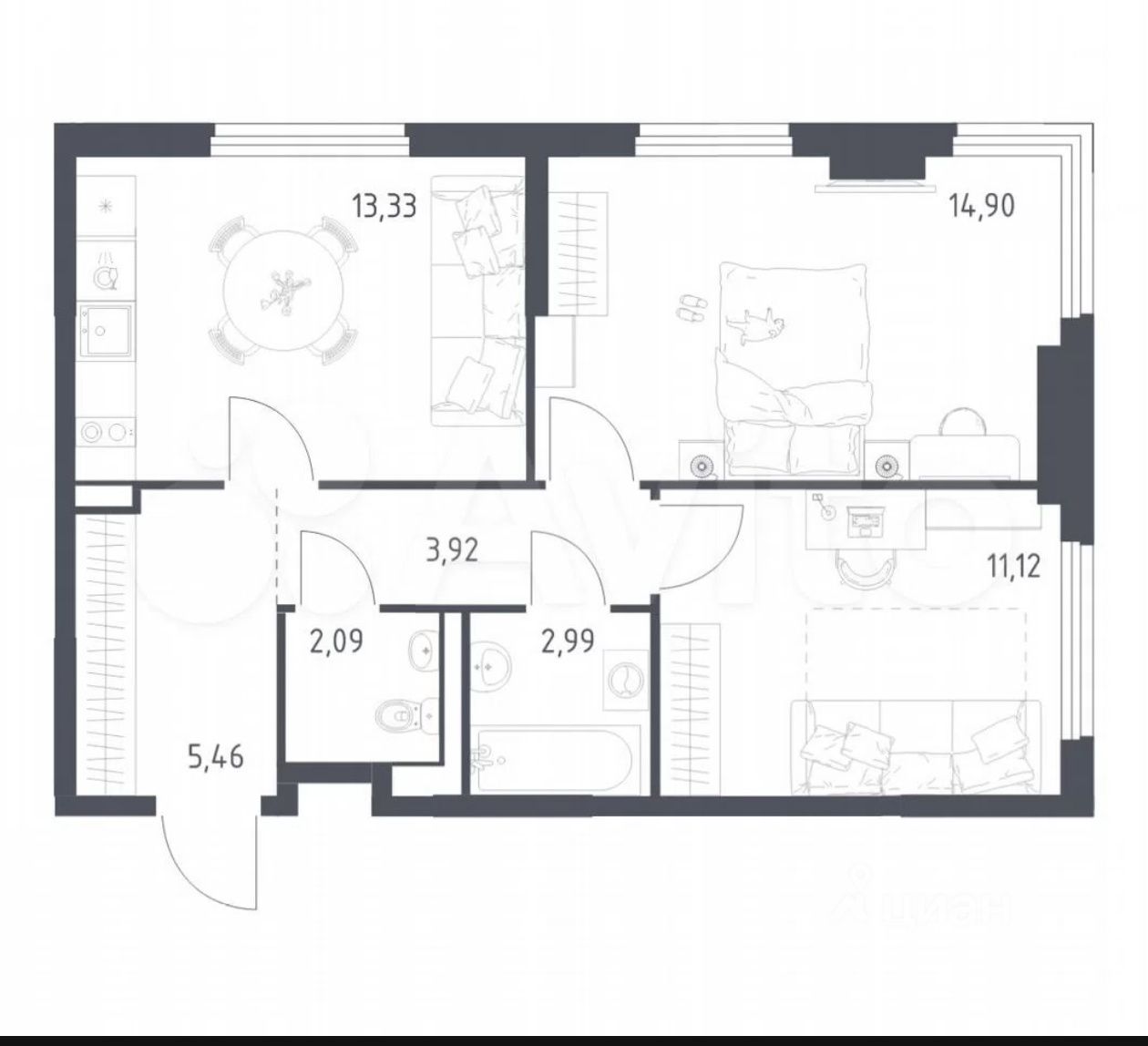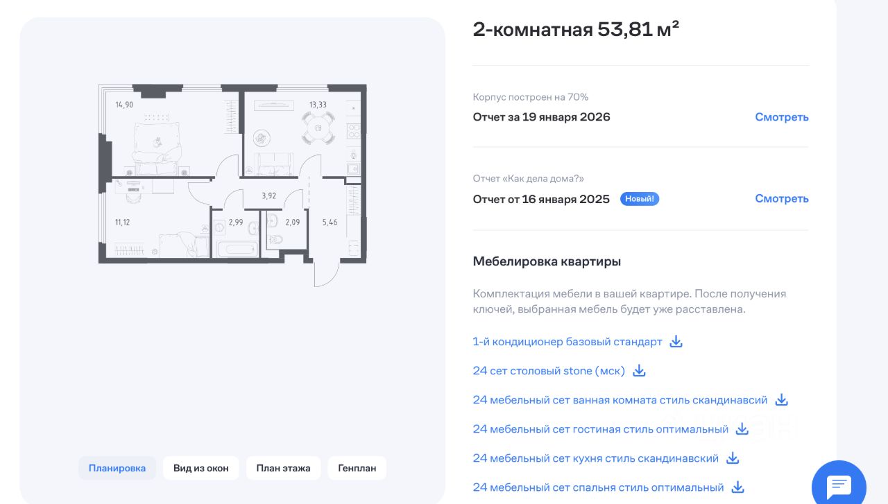 Предлагается 2-комнатная квартира комфорт-класса площадью 53,81 кв.м в корпусе 19 на 9-м этаже, в жилом комплексе Пригород Лесное.