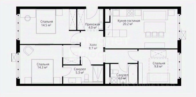 Арт. 131653671 Продаётся 3-к квартира общей площадью 81.80 кв. М с предчистовой отделкой в ЖК "У реки. Эко Видное 2.0" на 9-м этаже 17 этажного дома.
