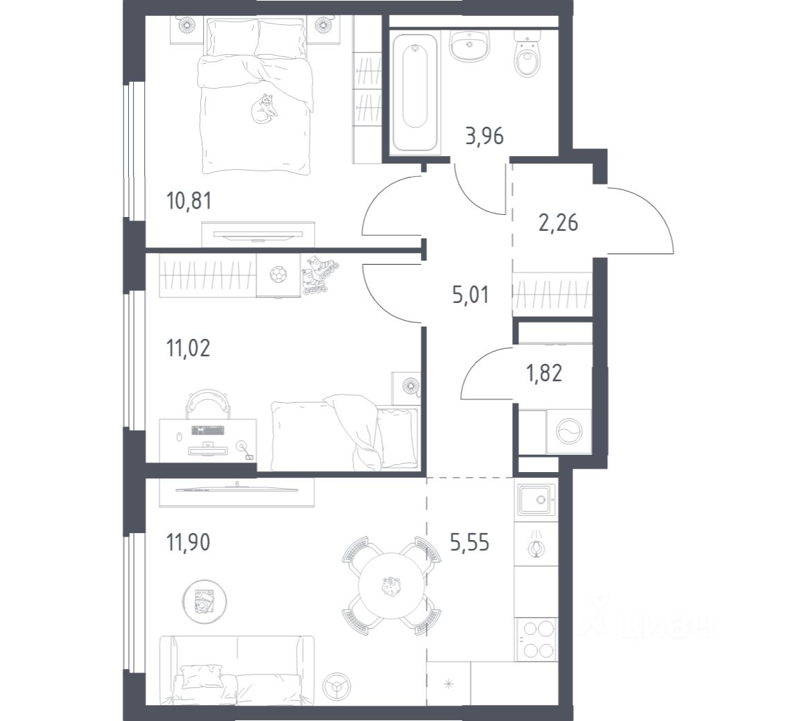А если не хочется тратить время на ремонт, можно выбрать опцию — с отделкой. Перед тем как отдать ключи, застройщик установит натяжные потолки, поклеит обои под покраску, положит ламинат светлых тонов, а в санузлах — керамическую плитку и керамогранит.