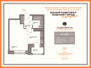 В ПРЯМОЙ продаже большая студия в ЖК комфорт класса "Видный город".