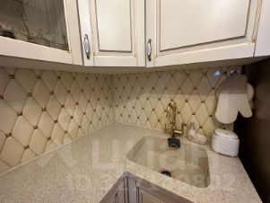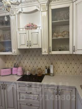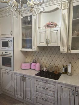 Кухня с дорогим ремонтом в классическом стиле. Столешница - искусственный камень. Выход в лоджию из кухни. В лоджии имеется большой шкаф для хранения мелочи, банок и т.п.