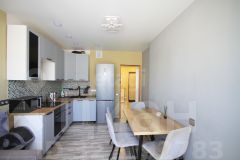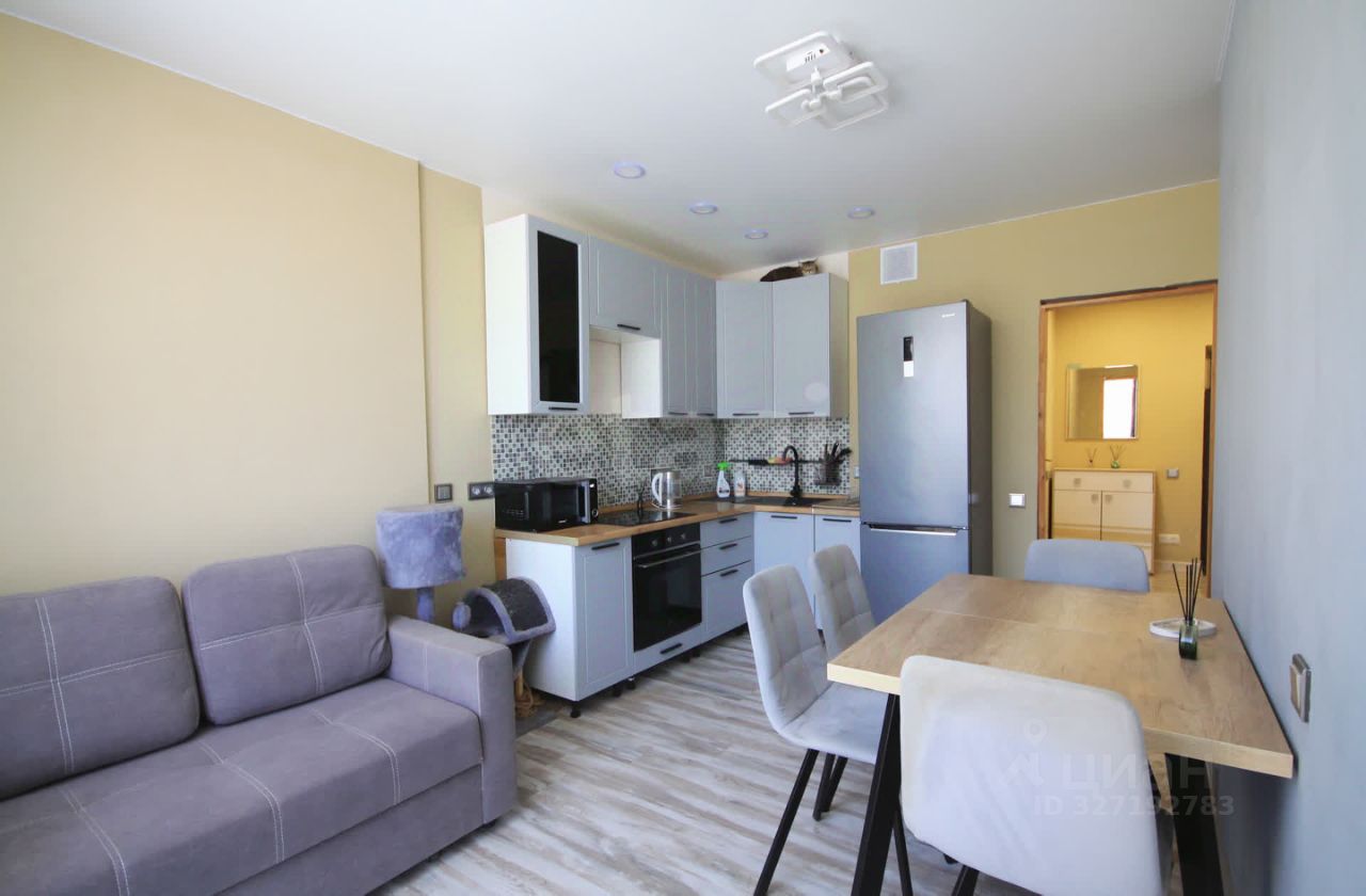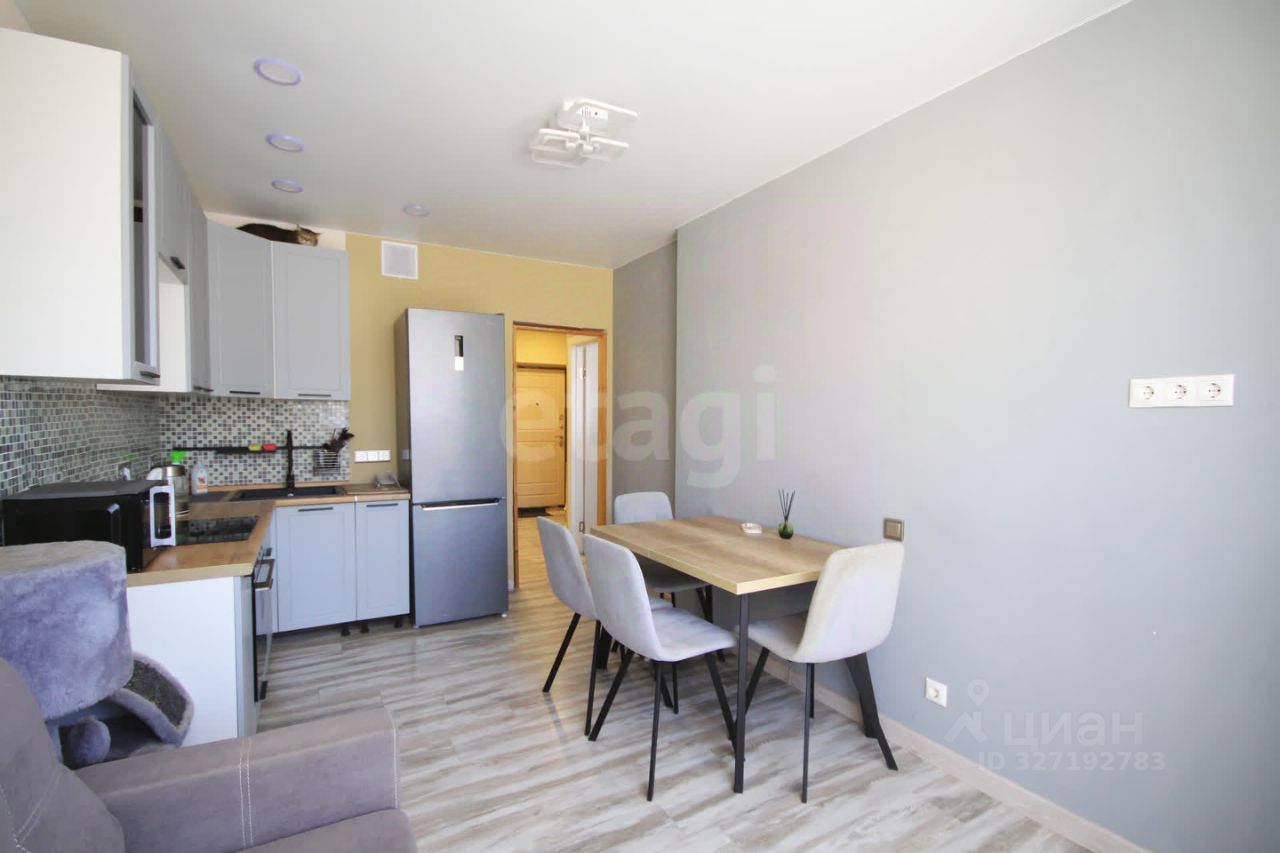 Улучшенная планировка квартиры с кухней-гостиной 14 м и жилой комнатой совместно с гардеробной. Санузел с ванной в износостойкой плитке и эргономичная входная группа. Единый контур ламината по всей площади квартиры создаёт эстетичный вид, простоту ухода и визуальное расширение пространства