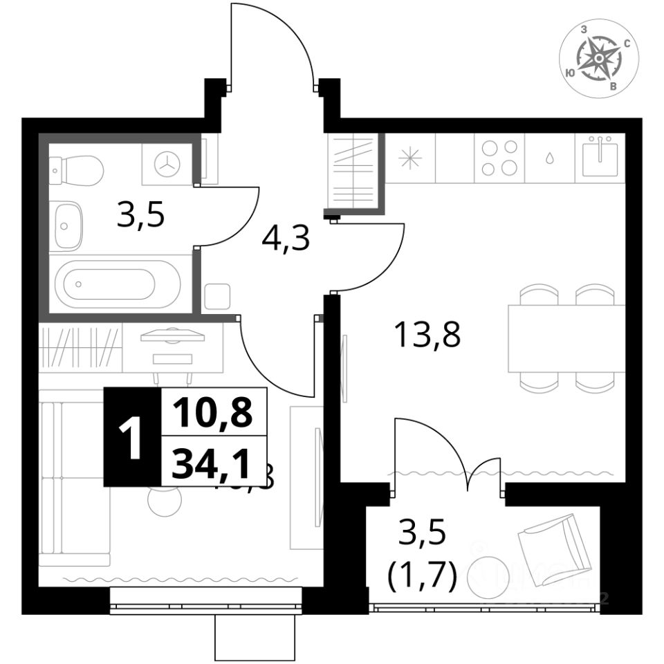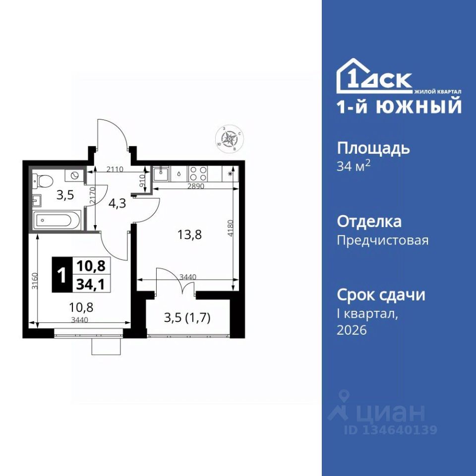 Продаётся 1-к квартира номер 278 общей площадью 34.1 кв.м. на 16-м этаже 25 этажного здания. Предчистовая отделка. Цена с учётом скидки.