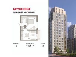 Квартира с кухней-гостиной и одной спальней в "Первом квартале". Особенности планировки: балкон, вид во двор, предчистовая отделка.