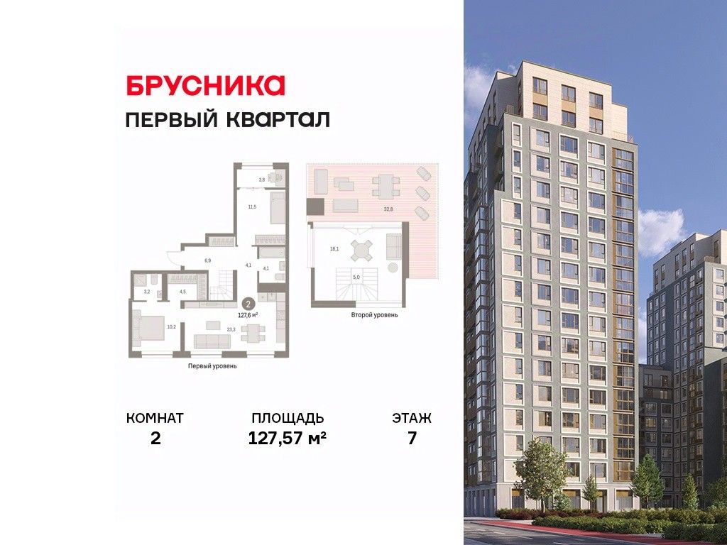 Квартира с кухней-гостиной и двумя спальнями в "Первом квартале". Особенности планировки: без отделки, вид во двор, второй санузел, гардеробная, квартира на две стороны, мастер-спальня, окна в пол, разнесённые спальни, терраса на крыше, тёплая лоджия.