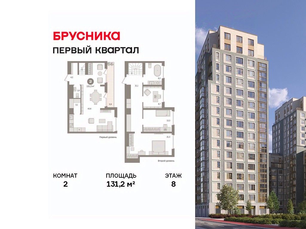Двухуровневая квартира с кухней-гостиной и двумя спальнями в "Первом квартале". Особенности планировки: без отделки, второй санузел, двухуровневая, окно в санузле, терраса.