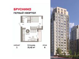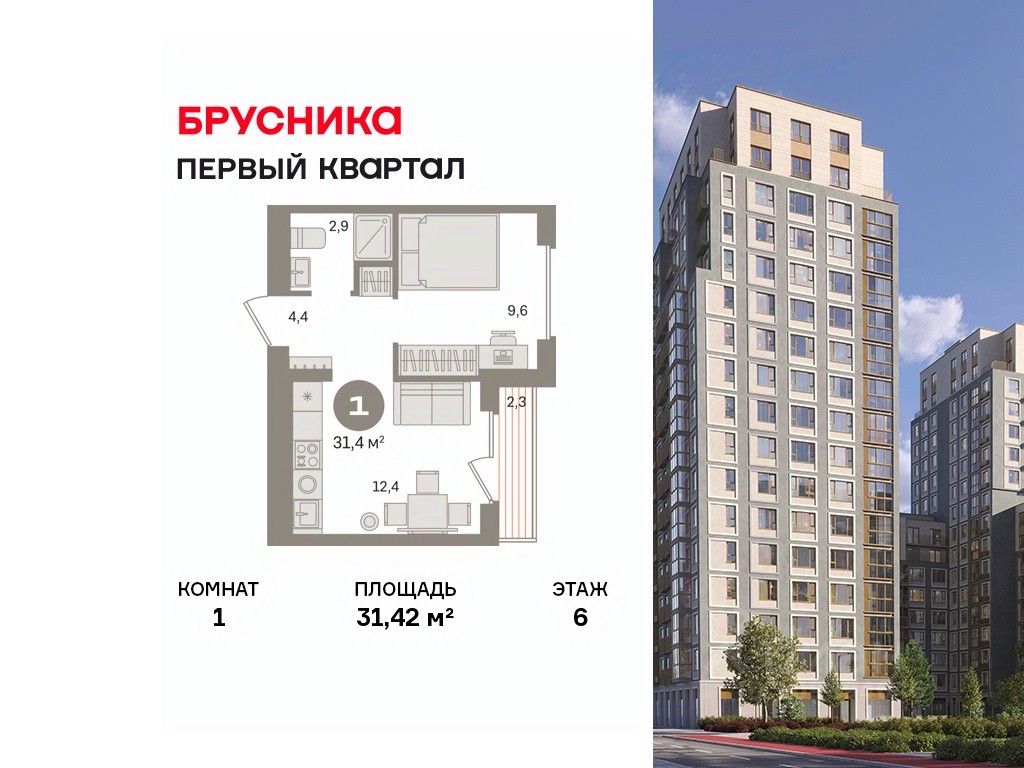 Квартира с кухней-гостиной и одной спальней в "Первом квартале". Особенности планировки: вид во двор, предчистовая отделка, терраса.