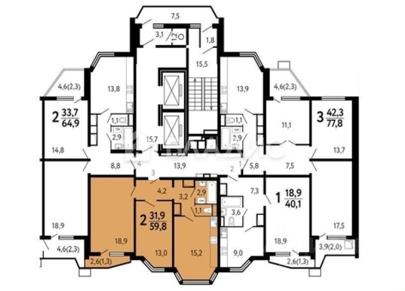 - Просторность и удобство планировки: жилая площадь составляет 31,9 кв. м, а площадь кухни — 15,2 кв. м. Высота потолков 2,7 м создаёт ощущение простора и свободы.