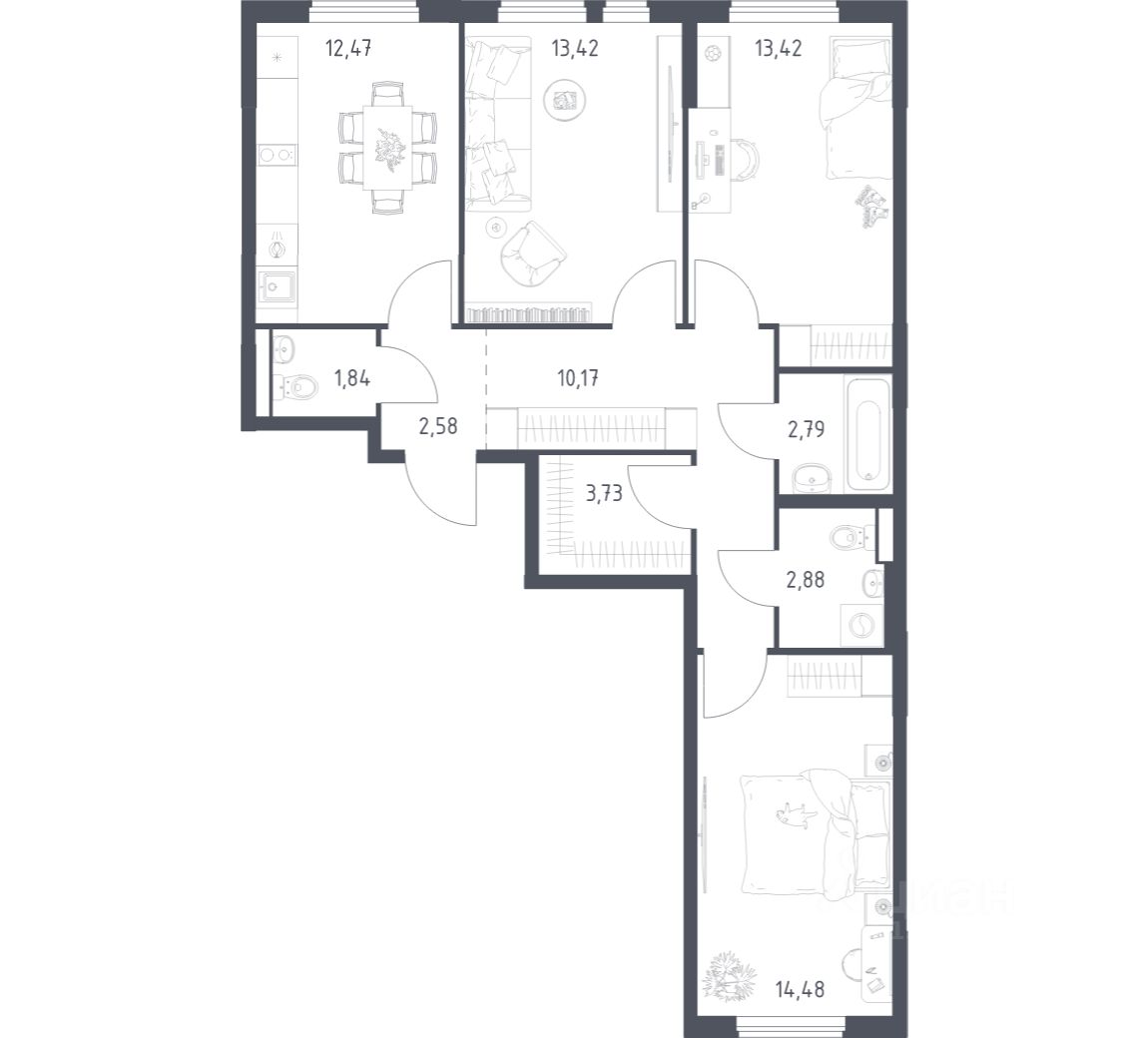 Строим кварталы для жизни с заботой о будущем. Предлагается 3-комнатная квартира комфорт-класса площадью 77,78 кв.м в корпусе 8.1 на 4-м этаже, в жилом комплексе "Горки Парк".