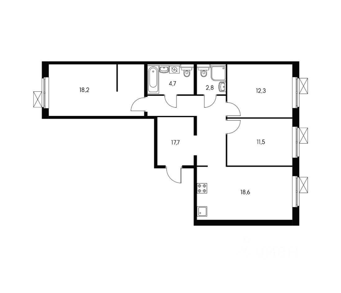 Уникальный объект - бывший шоурум ПИК. Весь интерьер выполнен продукцией Икея, за исключением ортопедических матрасов и большого стола из натурального дерева, за которым во время праздничного застолья можно одновременно разместить не только жильцов, но и гостей.