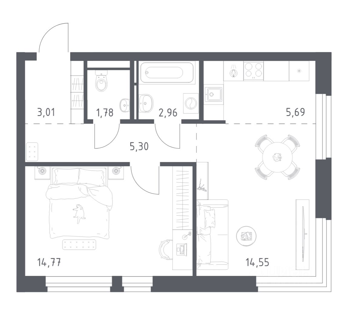 Если не хочется тратить время на ремонт, можно выбрать опцию — с отделкой. Перед тем как отдать ключи, застройщик установит натяжные потолки, поклеит обои под покраску, положит ламинат светлых тонов, а в санузлах — керамическую плитку и керамогранит.