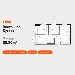 Продаётся 3-комн. квартира площадью 68,9 кв.м на 5 этаже 25 этажного дома (Корпус 48, Секция 4) проекта ПИК Восточное Бутово. Светлый просторный подъезд на уровне земли, функциональная планировка, большие окна, предчистовая отделка.