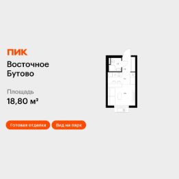Продаётся квартира-студия площадью 18,8 кв.м на 4 этаже 25 этажного дома (Корпус 47, Секция 1) проекта ПИК Восточное Бутово. Светлый просторный подъезд на уровне земли, функциональная планировка, большие окна, c отделкой.