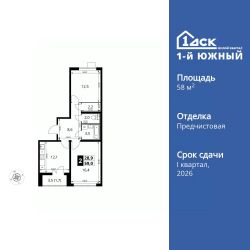 Продаётся 2-к квартира номер 124 общей площадью 58.9 кв.м. на 8-м этаже 25 этажного здания. Предчистовая отделка. Цена с учётом скидки.