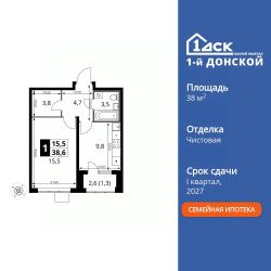 Продаётся 1-к квартира номер 141 общей площадью 38.6 кв.м. на 16-м этаже 24 этажного здания. Чистовая отделка.