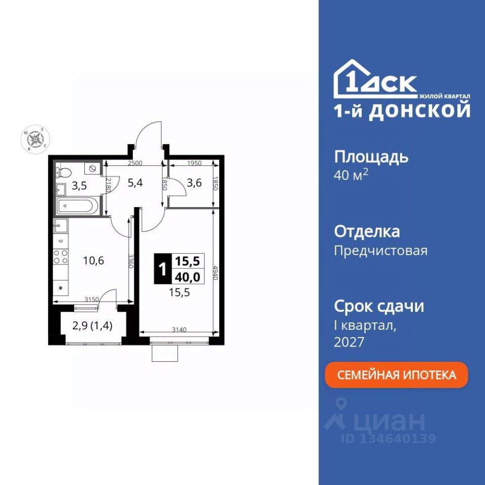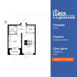 Продаётся 1-к квартира номер 406 общей площадью 40 кв.м. на 17-м этаже 24 этажного здания. Предчистовая отделка.