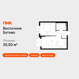 Продаётся 1-комн. квартира площадью 35,5 кв.м на 11 этаже 17 этажного дома (Корпус 48, Секция 2) проекта ПИК Восточное Бутово. Светлый просторный подъезд на уровне земли, функциональная планировка, большие окна, предчистовая отделка.