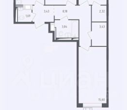 Вторая комната (13.74 кв. м) может служить кабинетом, гостевой спальней или семейной комнатой. Самое большое помещение (15.6 кв. м) с окнами во двор идеально подойдет для детской; рядом расположена вторая гардеробная площадью 3.43 кв. м.