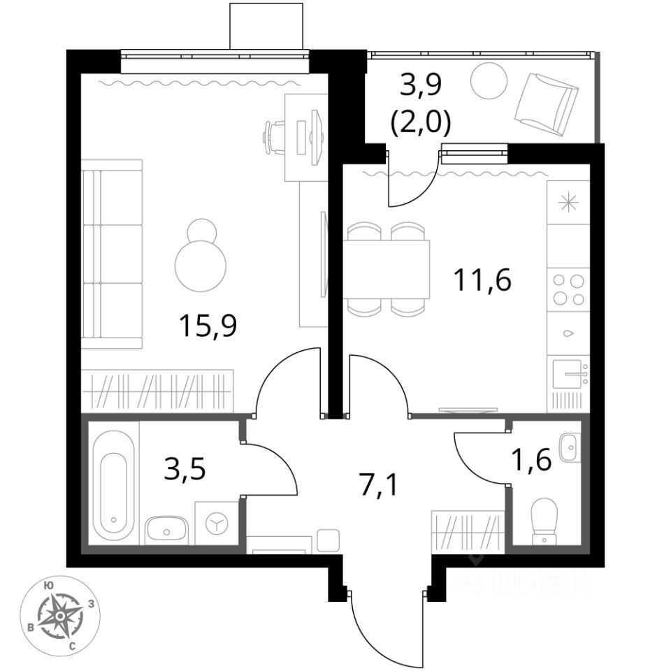 - Линейная планировка - максимальная функциональность и удобство.