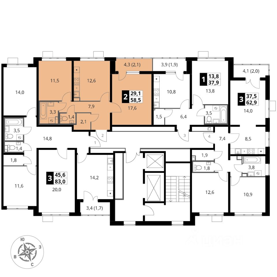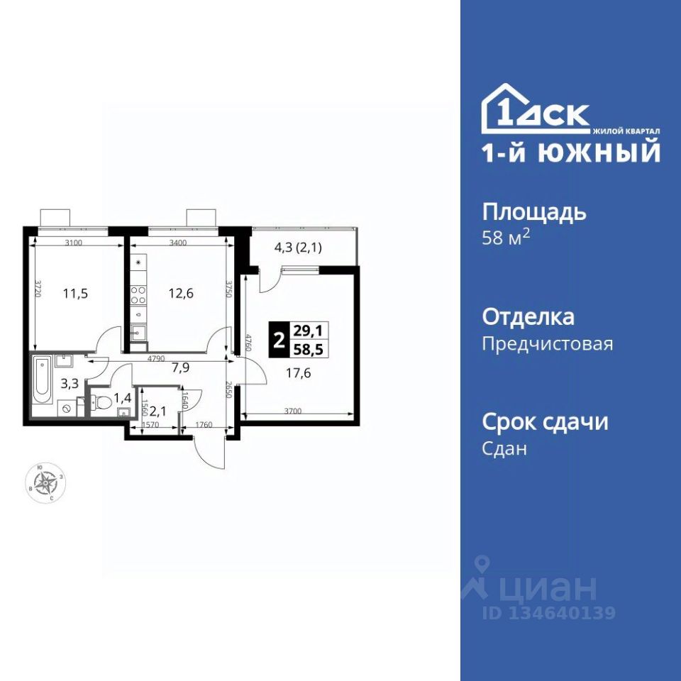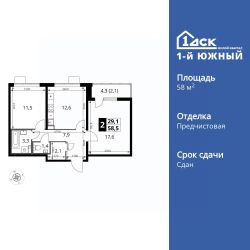 Продаётся 2-к квартира номер 30 общей площадью 58.3 кв.м. на 9-м этаже 25 этажного здания. Предчистовая отделка. Цена с учётом скидки.