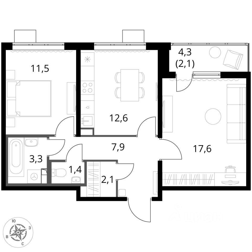 - Линейная планировка - максимальная функциональность и удобство.