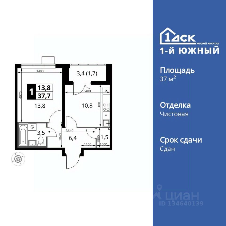 Продаётся 1-к квартира номер 378 общей площадью 37.7 кв.м. на 7-м этаже 24 этажного здания. Чистовая отделка. Цена с учётом скидки.