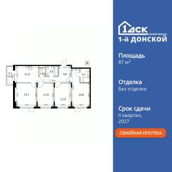 Продаётся 4-к квартира номер 211 общей площадью 87.5 кв.м. на 21-м этаже 24 этажного здания. Без отделки. Цена с учётом скидки.