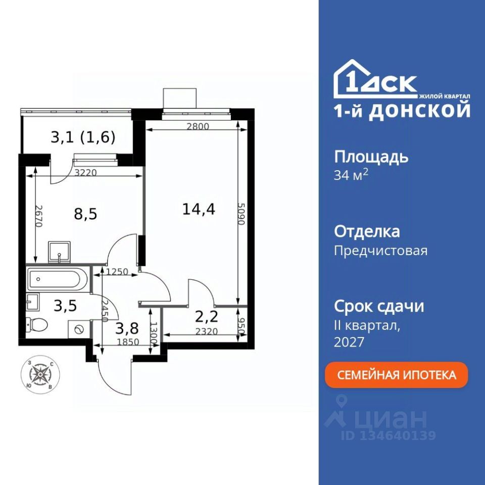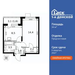 Продаётся 1-к квартира номер 95 общей площадью 34 кв.м. на 10-м этаже 24 этажного здания. Предчистовая отделка. Цена с учётом скидки.