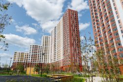 "1-й Донской": продуманная среда в развивающемся районе. На территории - муниципальные школа и 2 детских сада, поликлиника, торговый центр с площадью для мероприятий. Сеть пешеходных маршрутов ведёт к магазинам и кафе, отделённым от дорог зелёными фито-стенами.