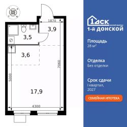 Продаётся квартира-студия номер 494 общей площадью 28.9 кв.м. на 22-м этаже 24 этажного здания. Без отделки. Цена с учётом скидки.